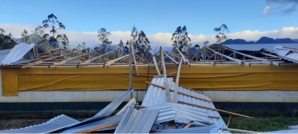 Em alguns municípios, aviários e galpões agrícolas tiveram parte ou todo o telhado arrancado com a força dos ventos, como em Morro Grande, Santa Rosa do Sul, Lauro Müller, Cocal do Sul, Treviso e Urussanga. Em Siderópolis, parte de produções de cana-de-açúcar foram tombadas.