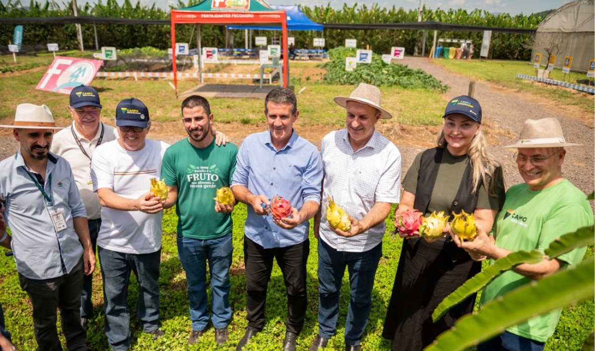 O Campo Agroacelerador apresentou inovações em diversas culturas e, logo no primeiro dia, sediou a 4ª Abertura Oficial da Colheita da Pitaya de Santa Catarina, reunindo lideranças do agro regional e estadual.