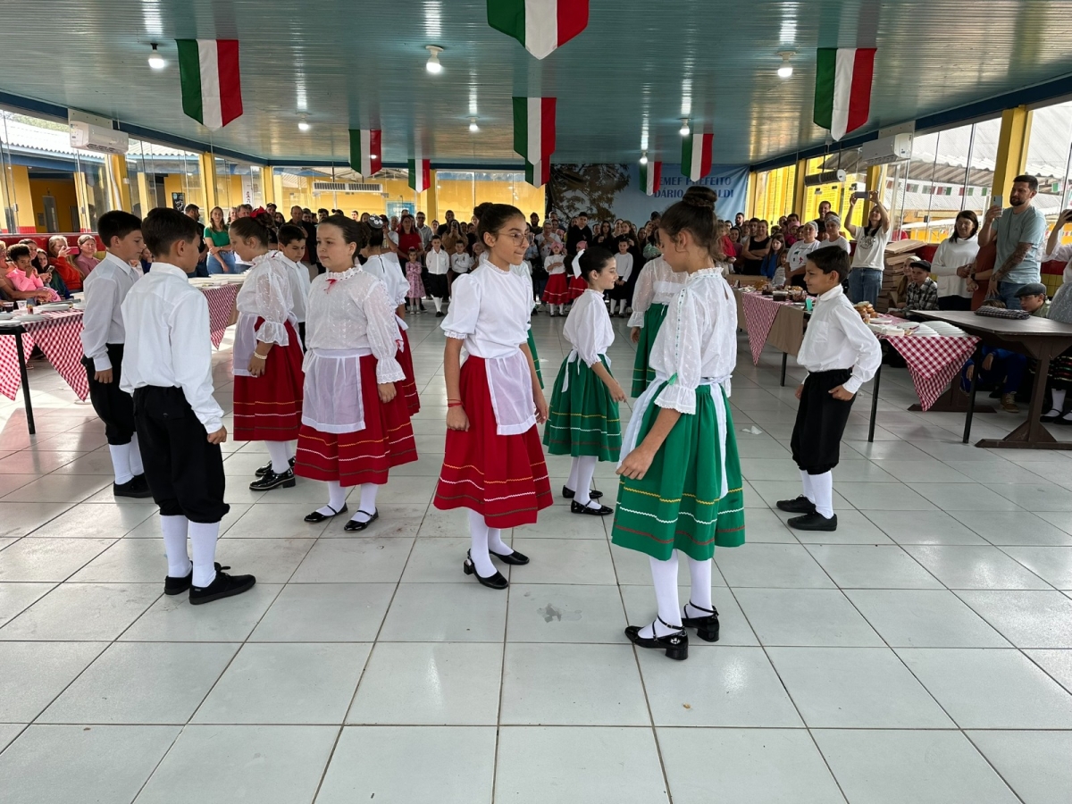 Para homenagear os italianos, pais e alunos também conferiram o evento que transportou a cultura, tendo como objetivo celebrar e preservar a herança dos imigrantes italianos da região. “É uma grande alegria estarmos aqui em família, celebrando a cultura. Um povo que tem história e não tem tradições é um povo sem vida”, salientou a secretária de Educação, Aline Coral.
