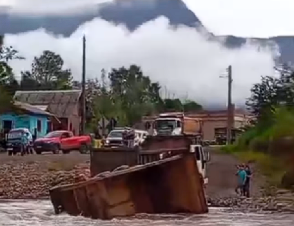 Tudo aconteceu quando o caminhão atravessava uma ponte molhada. O veículo escorregou, caiu no rio e, na tentativa de resgatar, uma outra caçamba foi chamada. Mas durante o puxão, o primeiro caminhão acabou tombando de vez!