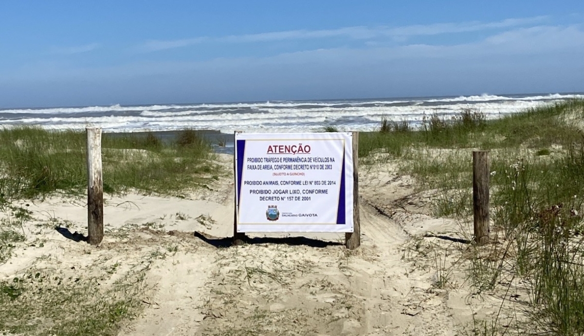 A Secretaria Municipal de Meio Ambiente de Balneário Gaivota informa que realizou o fechamento de diversos pontos de acesso de veículos à faixa de areia das praias do município, em conformidade com a legislação ambiental vigente e em atendimento às determinações judiciais aplicáveis.