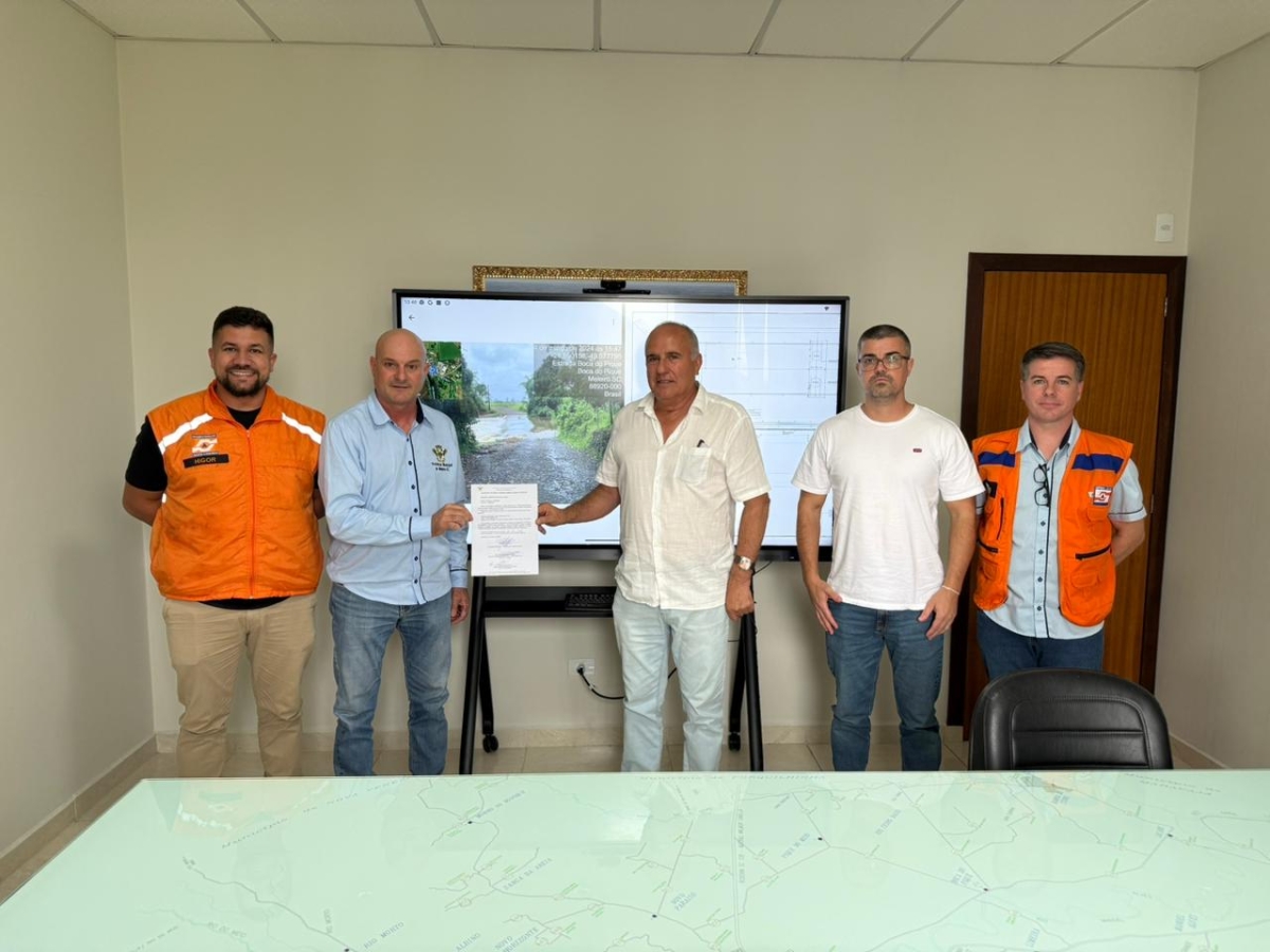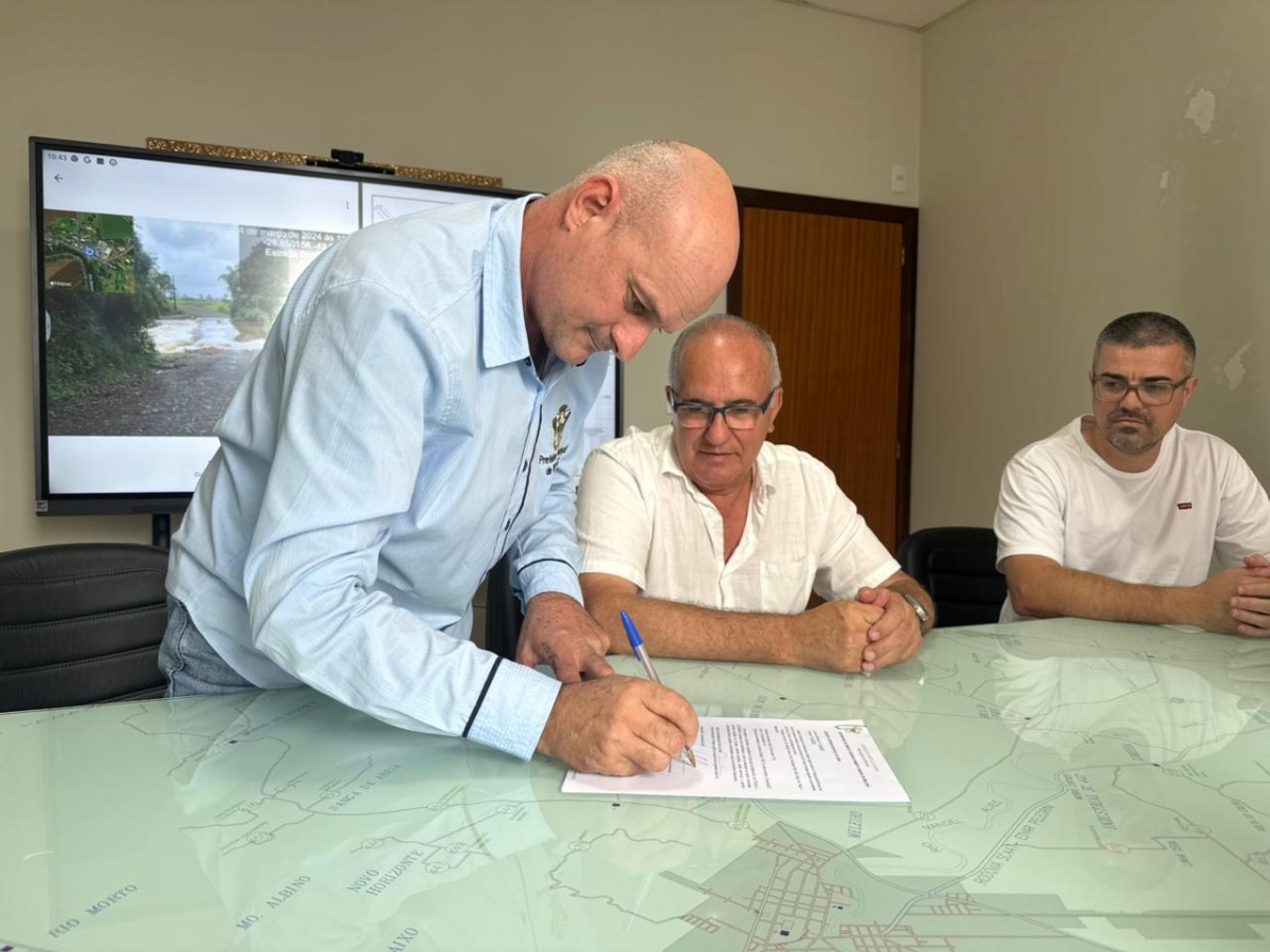 A Prefeitura de Meleiro assinou, na manhã desta quinta-feira (23), a ordem de serviço para a construção de uma nova ponte na comunidade de Boca do Pique, que visa a melhoria da mobilidade no interior do município. A obra integra um conjunto de investimentos que estão sendo realizados na localidade, que recebe melhorias como a aplicação de macadame e bica corrida e posteriormente receberá pavimentação asfáltica de um trecho de 3,2 quilômetros.