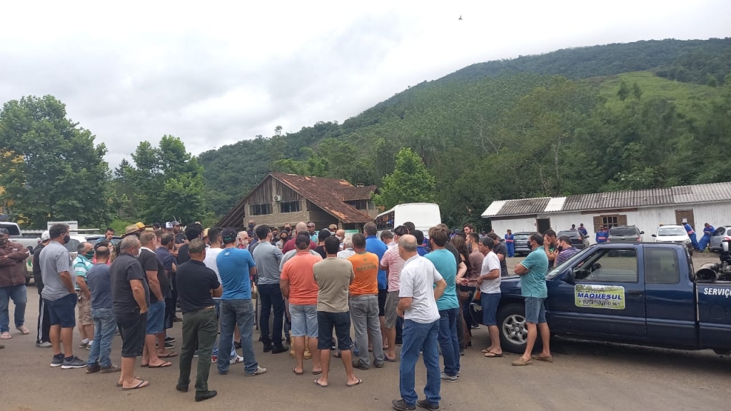 Timbé do Sul- Nesse momento, dezenas de motoristas estão fazendo uma manifestação em frente a central de trabalho da Setep no pé da Serra em Timbé do Sul. Trabalhadores da agricultura, plantadores de batatas, extração de madeiras, produtores de mel, funcionários de pousadas, não conseguiram subir em comboio nesta manhã a Serra da Rocinha.