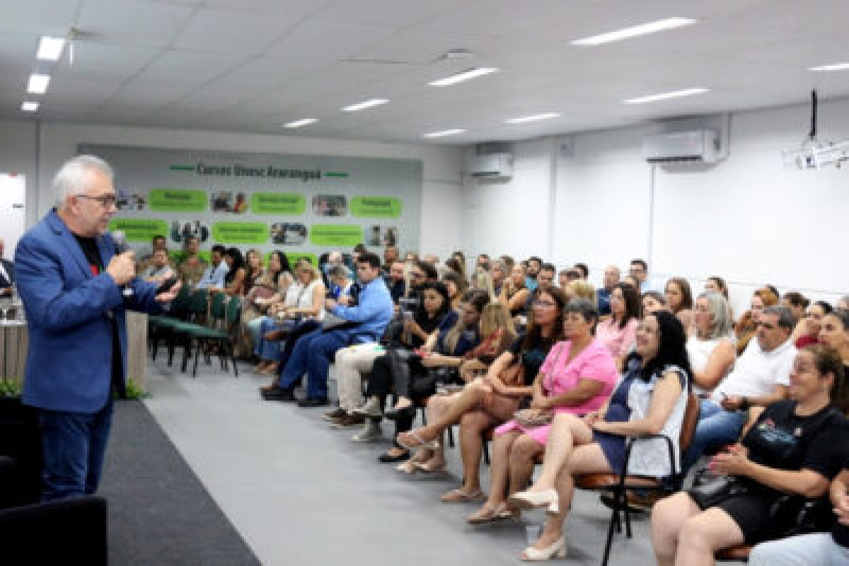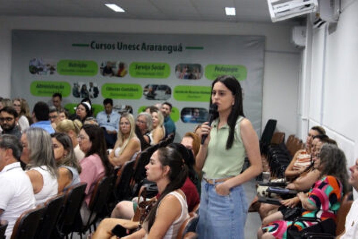 A Unesc Araranguá promoveu, nesta quinta-feira (5/2), o lançamento oficial de novos cursos semipresenciais no campus. Para marcar o momento, a Universidade recebeu a secretária de Estado da Educação de Santa Catarina e reitora licenciada da Unesc, Luciane Bisognin Ceretta, que ministrou a palestra “A importância da graduação para a qualificação e o mercado de trabalho”. O evento reuniu autoridades, comunidade acadêmica e regional na Unesc Araranguá.