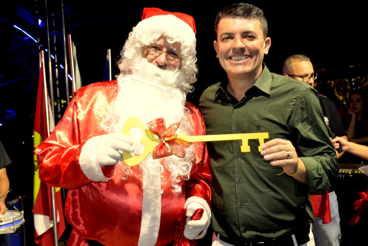 A população de Siderópolis recebeu, na noite de sexta-feira (06), o Papai Noel ao som da fanfarra da Escola José do Patrocínio. O "bom velhinho" chegou em um trenó moderno, puxado por um veículo motorizado, e foi recepcionado na Praça Coberta, onde atravessou todo o ambiente cercado por crianças até o palco. Lá, recebeu as chaves da cidade das mãos do prefeito Franqui Salvaro, marcando oficialmente a abertura do “Natal da Esperança”.