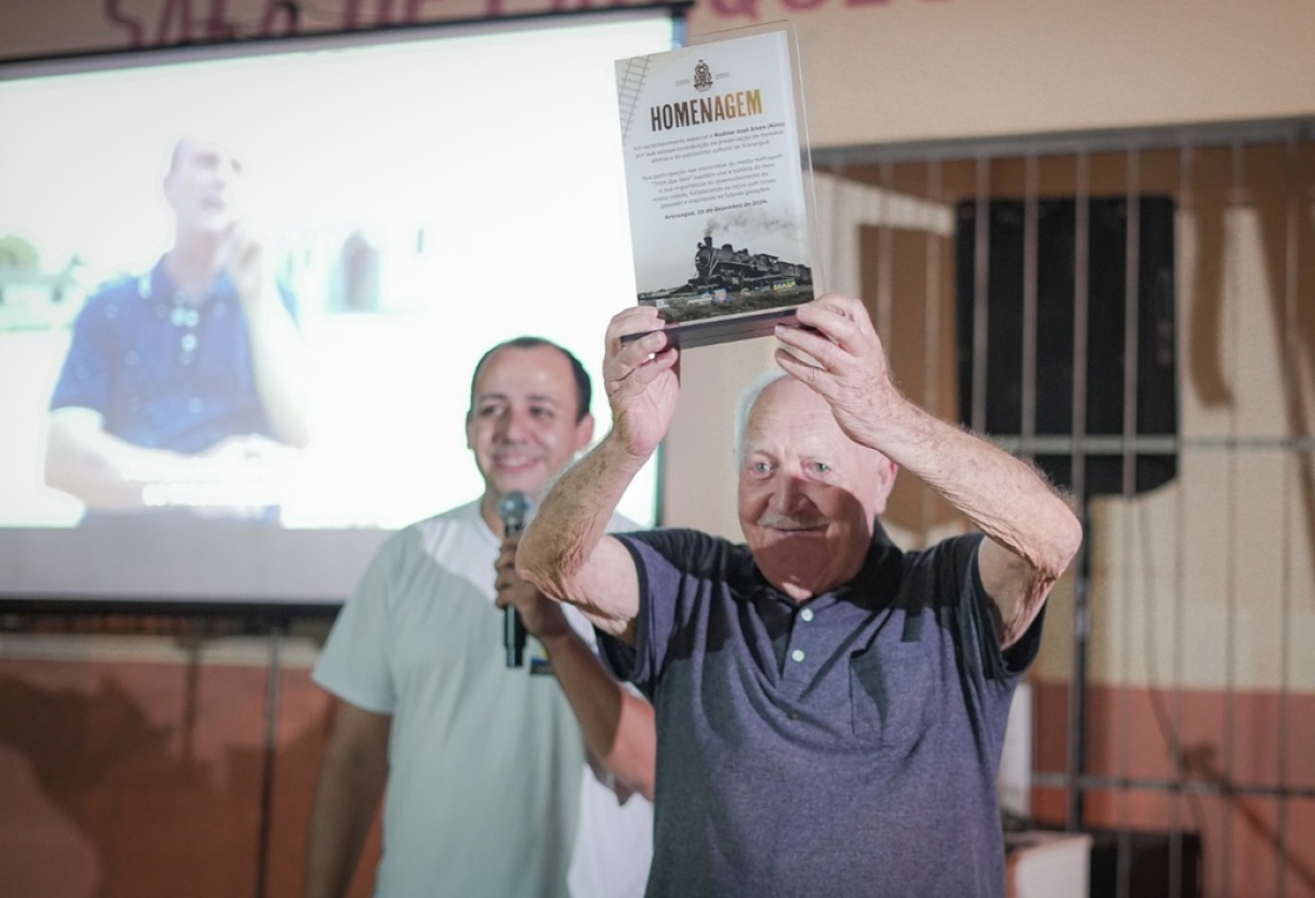 A produção do documentário homenageou todos os entrevistados com a entrega de uma placa que simboliza o reconhecimento pela preservação da história da ferrovia em Araranguá. Rolou muita emoção no momento da entrega.
