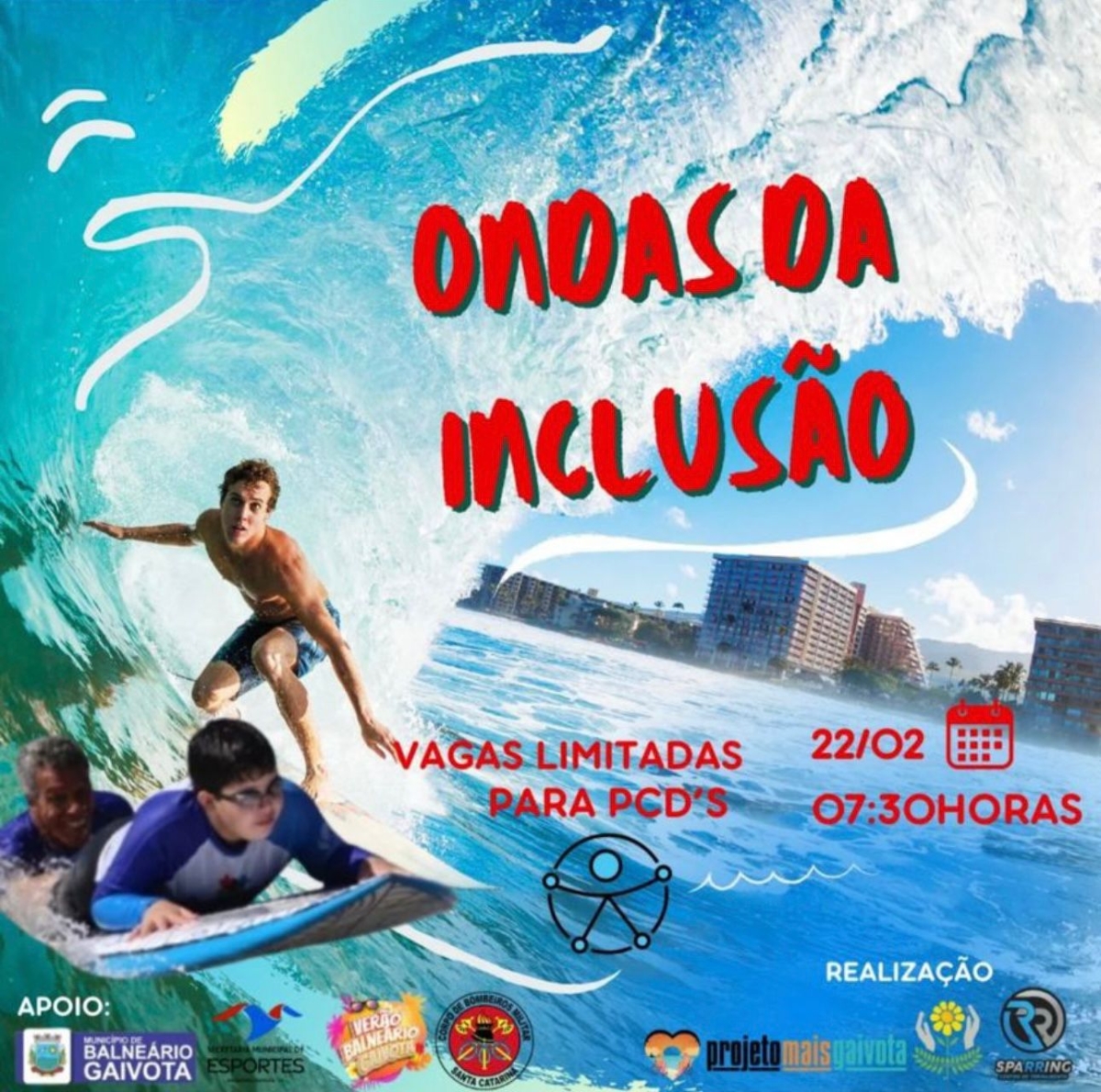 Com esse objetivo, no próximo dia 22 de fevereiro, com início às 7:30h, junto ao Corpo de Bombeiros Central, será realizado o Projeto "Ondas da Inclusão". Segundo os organizadores, será uma manhã de surf para pcd's - Pessoas com Deficiências e o intuito do projeto é de passar informações, através dos guarda vidas e ensinar a vivência dentro do mar, bem como falar um pouco sobre o ato de surfar e conhecer, praticar o esporte. Esse projeto conta com o apoio do @cbmsc.amesc apae e da @prefeiturabalneariogaivota