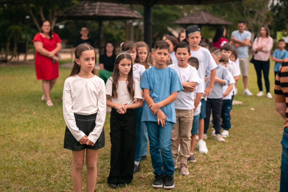 Entre sorrisos e muita animação, as próprias crianças também mostraram o quanto estavam felizes em fazer parte do momento. A pequena Isabela, falou com entusiasmo: “Eu estou amando ser camponesinha! A gente tirou foto, tomou café gostoso e brincou bastante. Tá sendo muito divertido!”