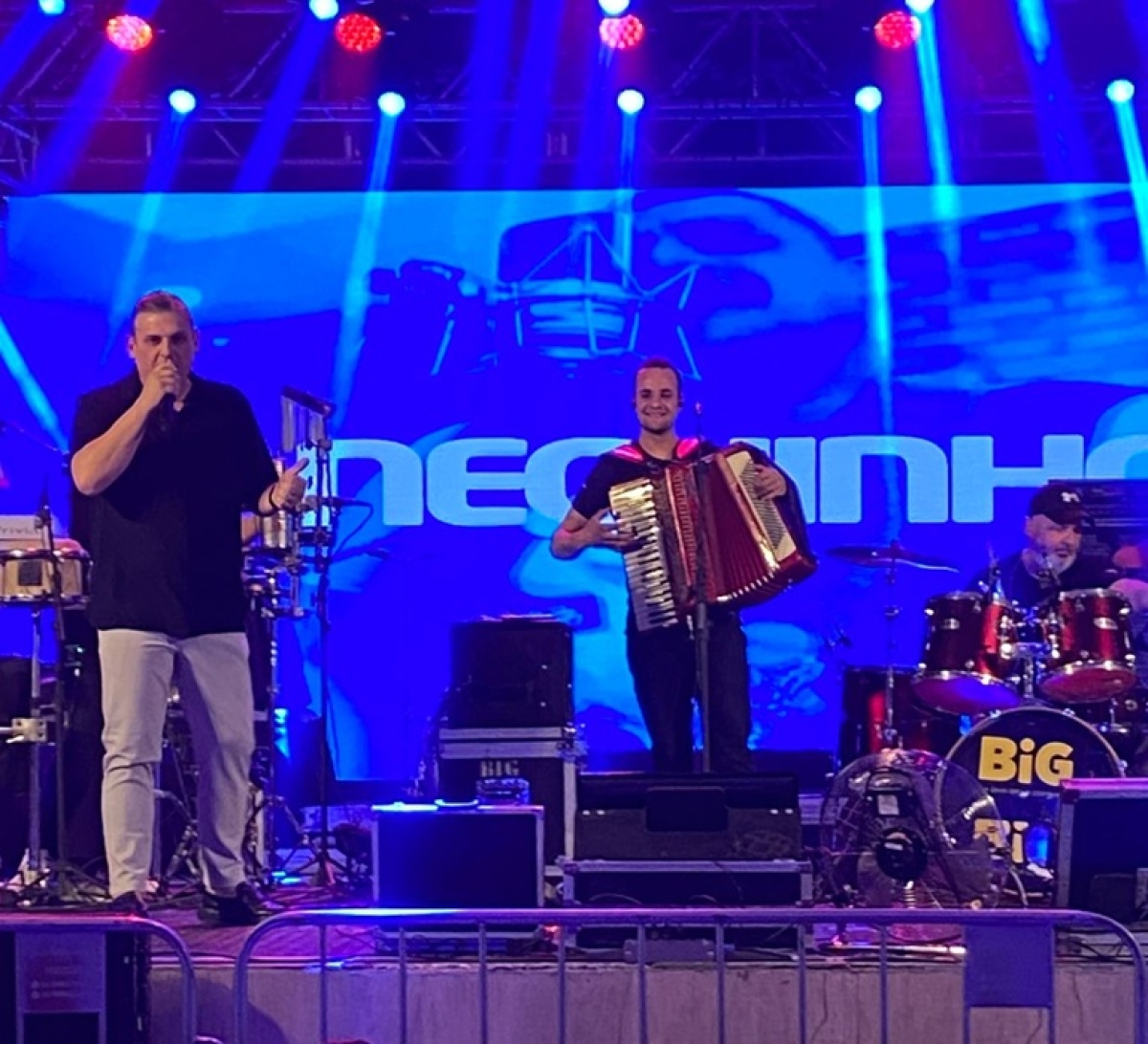 O cantor querido da região NEGUINHO, abriu o evento, agitando o público presente. Neguinho agradeceu a todos os convidados, anunciou as próximas atrações e convidou a dupla para subir ao palco.