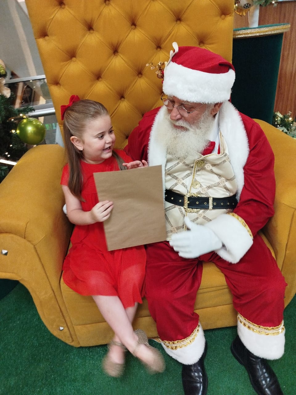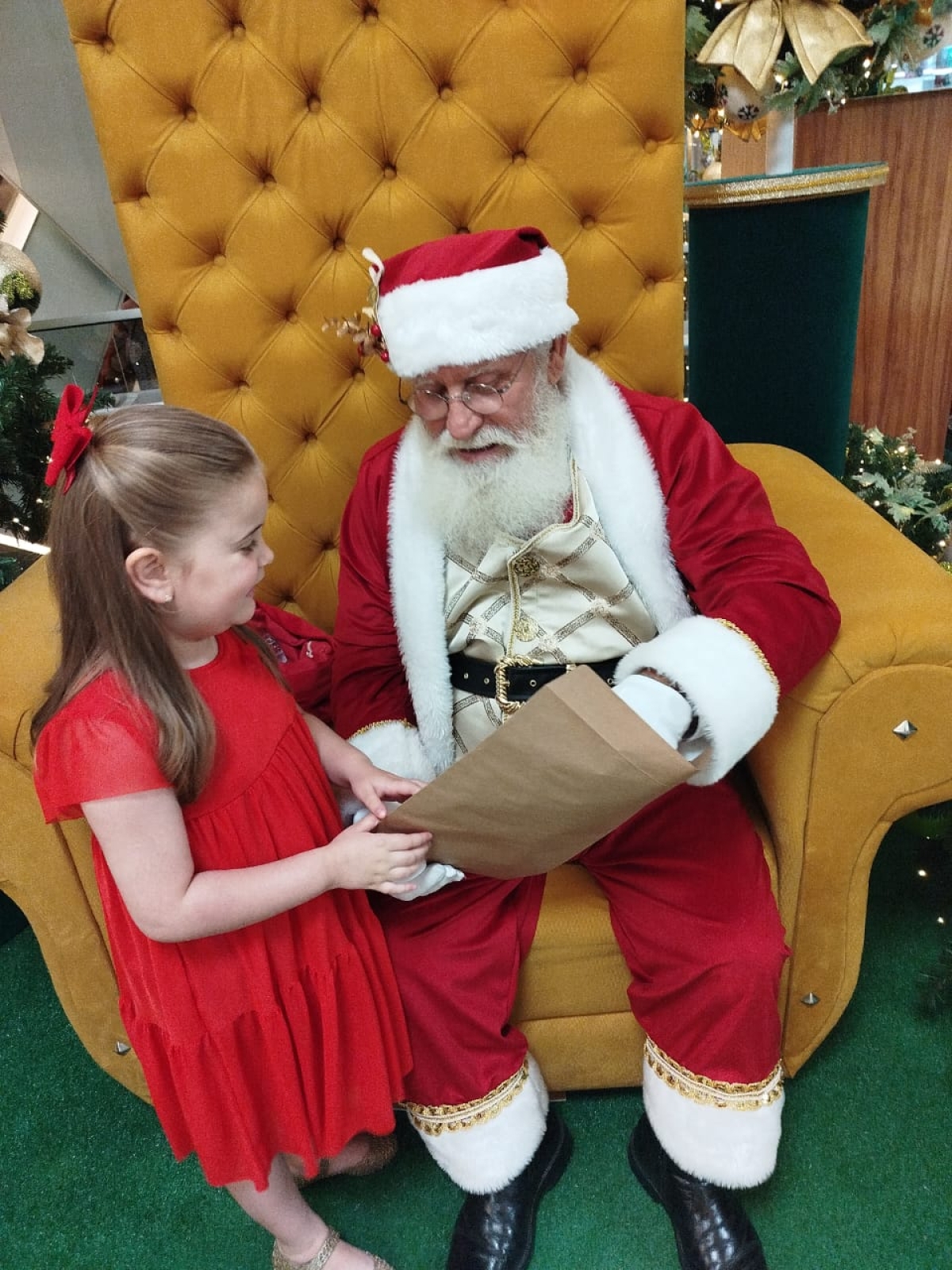 Na carta entregue ao Bom Velhinho, Clara escreveu com sinceridade e pureza típicas da infância: “Papai Noel, gosto muito de você. Eu me comportei. Gostaria de ganhar um presente. Deus abençoe. Com carinho, Clara”.
