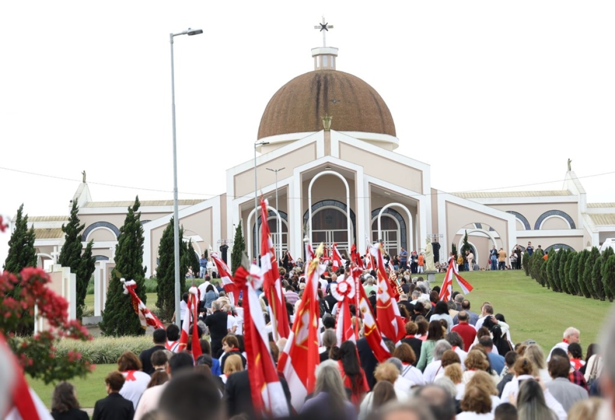 Já dentro da Basílica, o rito teve início com a entrada de 12 casais padrinhos com 12 velas levadas até as cruzes de consagração. Na sequência começou a celebração de elevação em si, com a saudação do bispo e a leitura do decreto assinado pelo Papa Francisco, que elevou o Santuário à Basílica em 17 de abril de 2024.