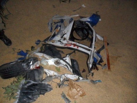 Caminhão carregado de arroz cai em cima de carro ocupado por dois adolescentes