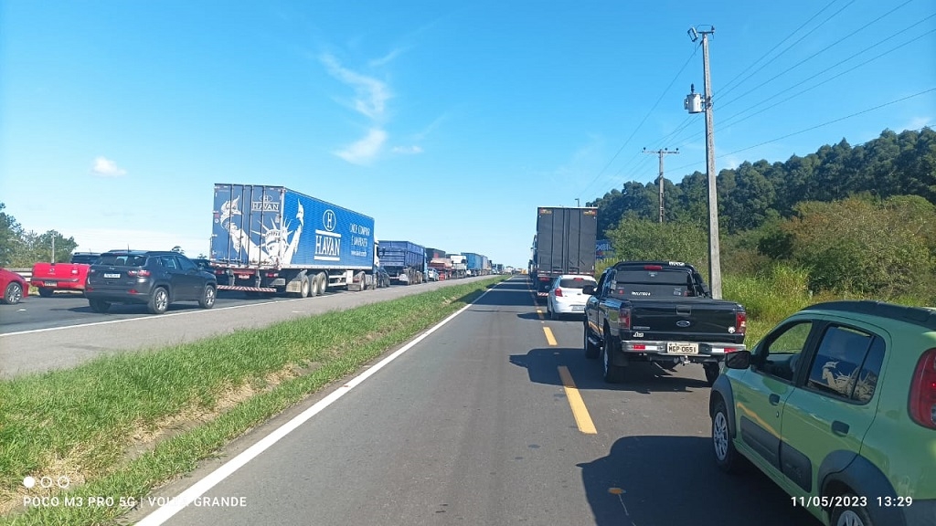 O deslocamento para Araranguá partindo de Criciúma ou Forquilhinha tende a se tornar muito mais vagaroso, já que o trânsito seguia praticamente parado no sentido Norte à Sul tanto na BR-101 quanto na marginal no começo da tarde.