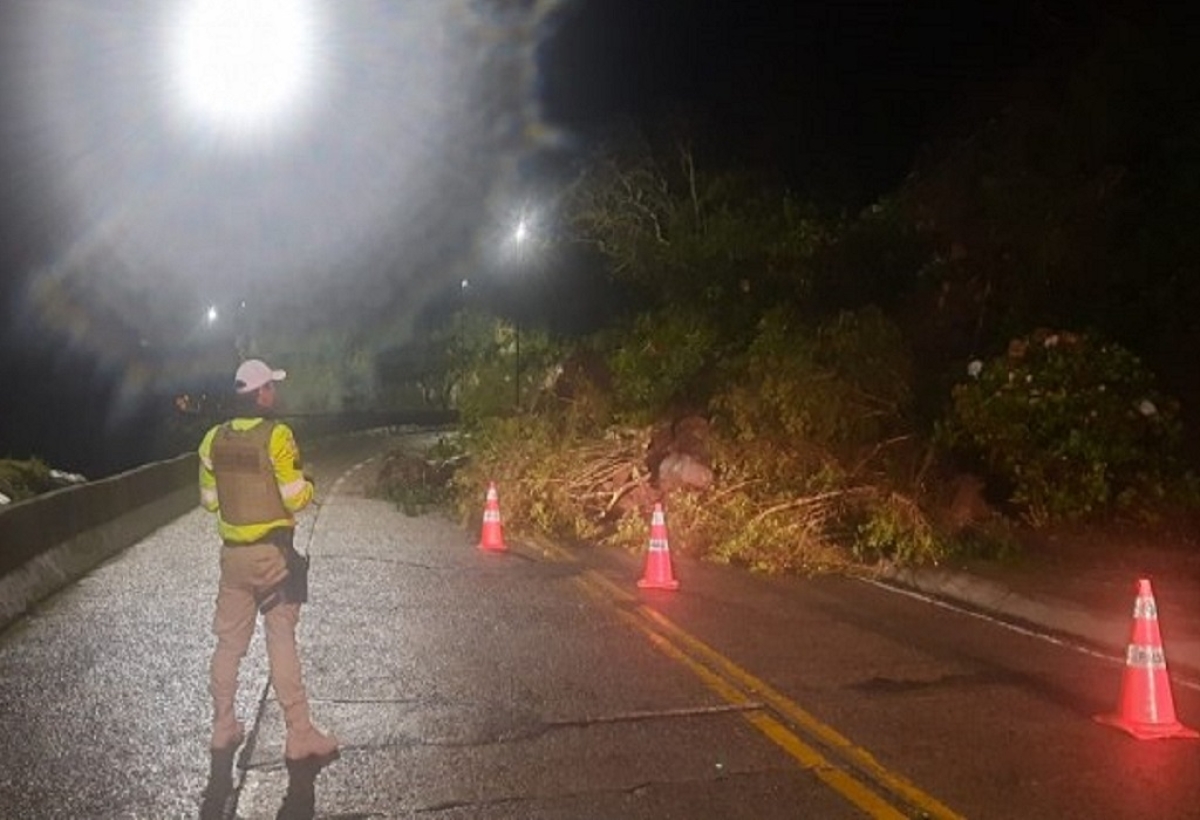 Lauro Muller - A Serra do Rio do Rastro (SC-390) está com trânsito em meia pista, após uma queda de barreira na noite dessa segunda-feira, dia 27, por volta das 21h30, no Km 406,3, em Lauro Müller.