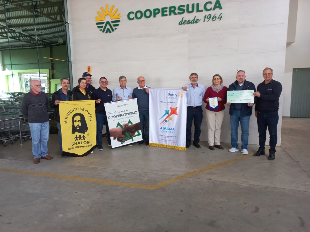 Segundo o Presidente da Coopersulca, Arlindo Manenti, Num primeiro momento foi levado os donativos, e num segundo momento que foi na manhã desta quinta-feira (04), o Presidente do Rotary de Lajeado/RS Airton juntamente com a esposa, estiveram fazendo uma visita no Supercooper em Turvo e na oportunidade foi entregue um cheque simbólico do valor arrecadado.