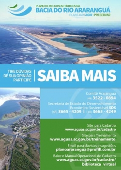 "Visando ajustar, sem conflitos, a convivência dos usos atuais e futuros da água, o Governo de Santa Catarina, por intermédio da Secretaria de Desenvolvimento Sustentável, deseja saber quem são os usuários do recurso hídrico no Estado. O cadastramento é uma das etapas do Plano de Recursos Hídricos, implantado este ano em nossa bacia, protagonizado pelo Comitê Araranguá", diz Paganini.