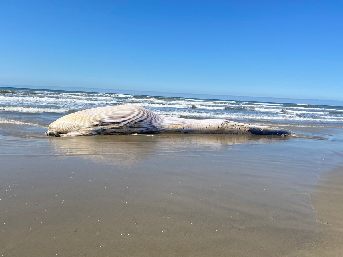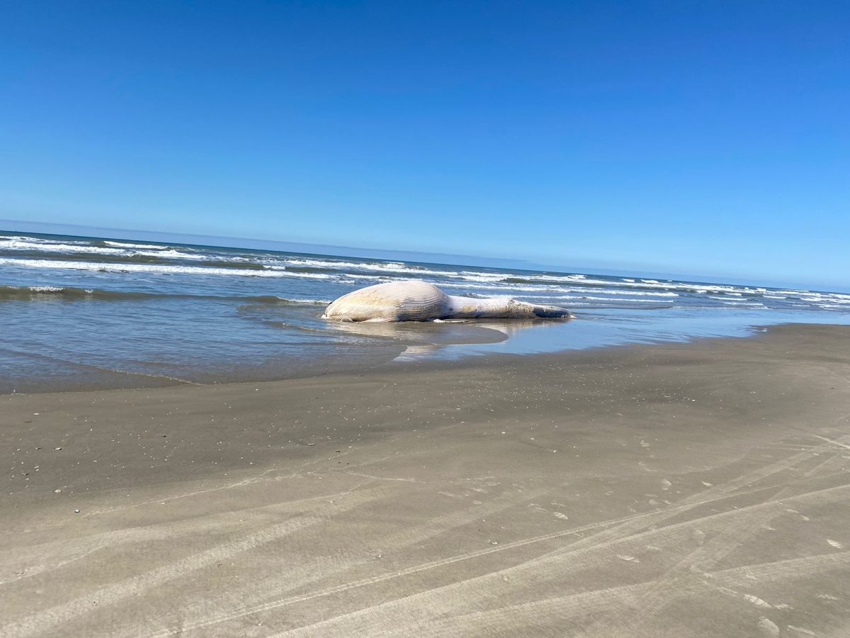 Baleia encalhada morta é encontrada na beira mar em Balneário Gaivota