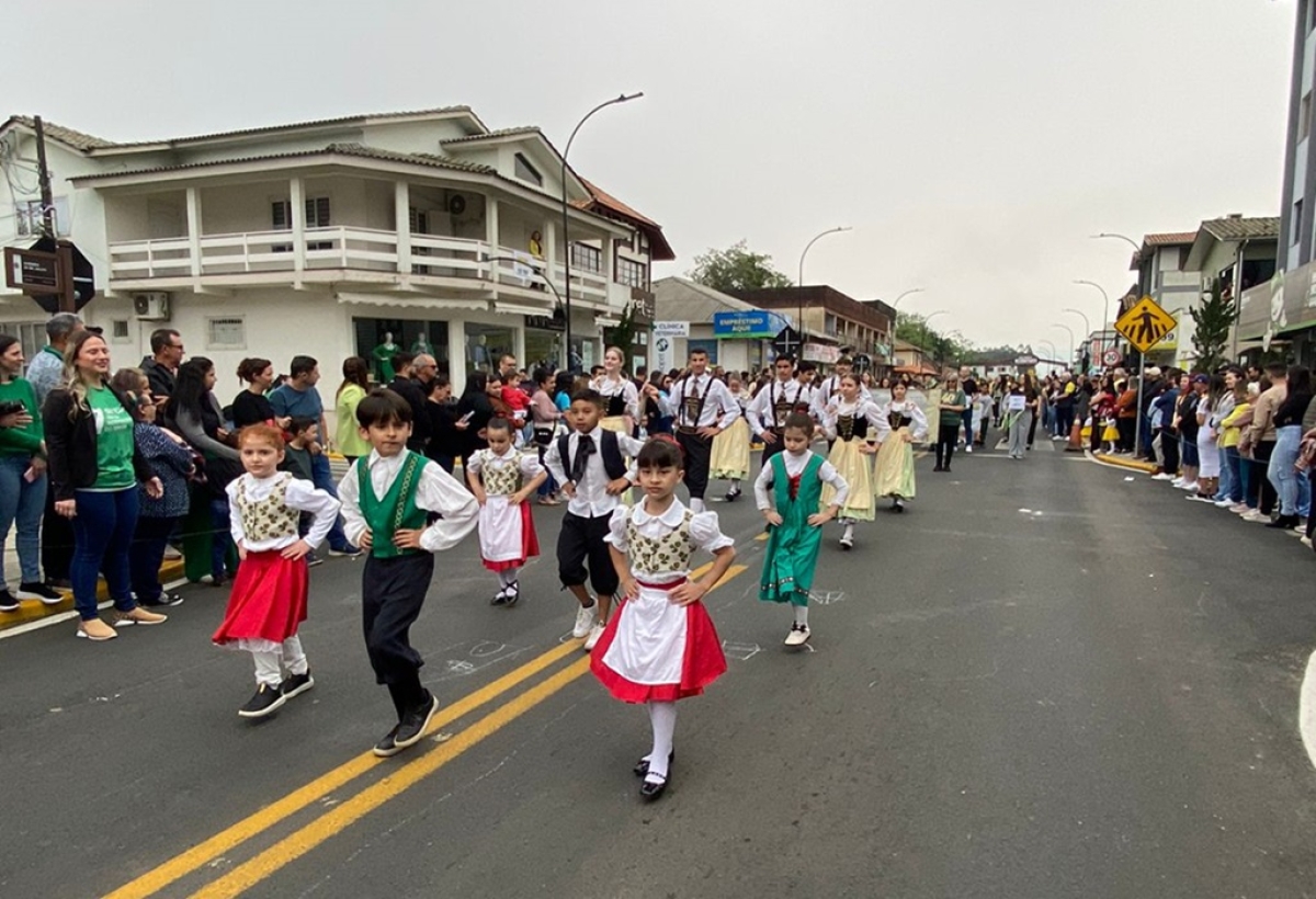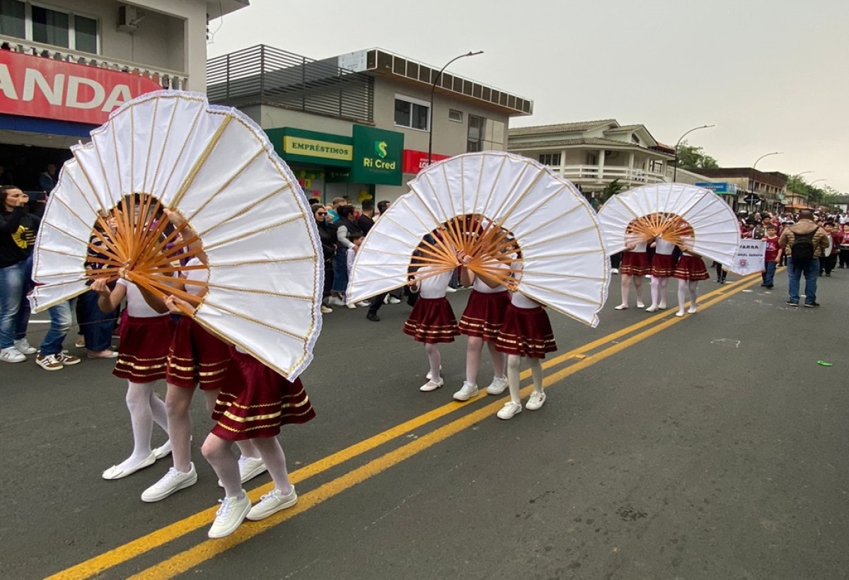 O desfile abriu com a Turminha do Professor Vânio e os personagens Ana Flora, João do Campo, Zé do Sul e o Professor Vânio. A rede municipal de Educação marcou presença com a equipe do CEI Prefeito Aristides José Bom, CEI Mário Marchesini, EMEF Frei Modesto devidamente uniformizados, Centro Integrado Multidisciplinar (CIM), Escola de Jovens e Adultos Jussânia Ursulina Búrigo de Souza (EJA).