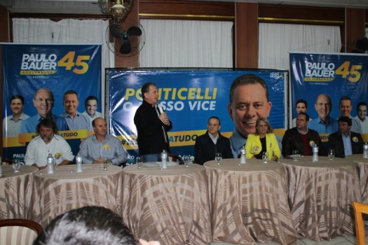 Araranguá- Joares Ponticelli, candidato a vice-governador, na chapa com o tucano Paulo Bauer, reuniu a impressa do vale na manhã de ontem (24), no Hotel Becker em Araranguá. Vários candidatos a Deputados também participaram do evento, entre eles, Jorge Boeira, José Milton Scheffer e Bete Tiscoski. Ponticelli, relatou a sua trajetória de vida e de política, natural de Pouso Redondo, interior do estado, foi vereador na cidade de Tubarão. Depois foi Deputado Estadual por 4 mandatos, presidente da Assembléia e Presidente do PP Catarinense. Postulava a vaga de Senador, caso o partido coligasse com o PSD de Colombo, Governador que mantiveram muita cordialidade durante os quatro anos, mas que no certo momento, o partido decidiu tomar outro rumo. Na oportunidade teceu alguns comentários sobre o atual governo e de suas pretensões caso seja eleito. Confira na edição impressa da próxima semana.