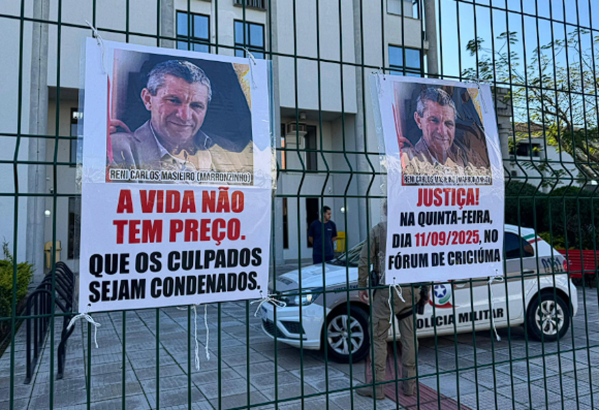 A família de Reni Carlos Masieiro, de 51 anos, morto com quatro tiros no dia 23 de fevereiro de 2014, em Siderópolis, realizou uma manifestação na manhã desta quinta-feira, dia 11, em frente ao Fórum de Criciúma, local que acontece o julgamento de três acusados do crime.
