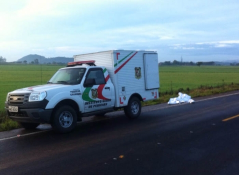 Um homem foi encontrado ás margens da rodovia estadual SC-108, em Meleiro na madrugada de hoje. polícias Civil e Militar da cidade foram acionadas, assim como o Instituto Geral de Perícia (IGP) e Instituto Médico Legal (IML). A vítima, um homem de aproximadamente 1m80cm, mulato, cabelo raspado, magro e forte, foi encontrada de bruços, com um tiro efetuado a curta distância, no meio da testa e estava com os dedos entrelaçados. A Polícia Civil de Turvo que irá investigar o caso, acredita-se que a execução tenha acontecido naquele local onde o corpo foi encontrado. Realizando uma varredura, foi encontrado jogado próximo ao corpo, no entanto, numa vala de uma plantação de arroz, uma mochila contendo roupas e uma touca ninja, geralmente usada na prática de roubos. No bolso da vítima também foi encontrado um cachimbo utilizado para fumar crack. O corpo foi recolhido e levado ao IML de Araranguá sem identificação, uma vez que o homem não possuía nenhum documento. A vítima que aparenta ter entre 25 a 35 anos, vestia uma bermuda jeans, uma blusa de moletom cinza com touca branca e chinelos. O homem tem diversas tatuagens mal feitas, tipo rabiscos e uma contendo o nome “Rodrigo”. O corpo permanece no IML de Araranguá sem identificação.
