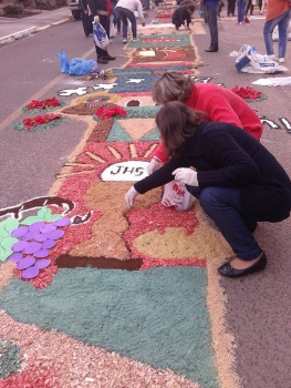 Tapetes decorados para a passagem de Cristo