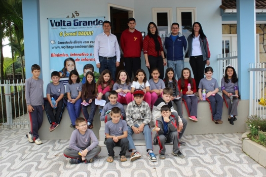 Em torno de 18 alunos(as) do 4º ano da EMEB Arizona estiveram na manhã de hoje conhecendo as instalaçõies do Jornal Volta Grande acompanhadas das professoras Cleonice Fontana Possamai e Ivonete Ghelere. A visita faz parte do projeto "Conhecendo o municipio" onde as crianças juntamente com as professoras seguem realizando visitas em empresas e instituições da cidade.