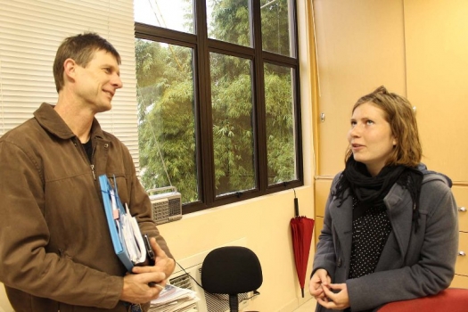 Cidade conhecida como a mais alemã do Sul de Santa Catarina, Forquilhinha está abrigando desde o último final de semana, a estudante dinamarquesa de literatura Pernille Knudsen de 22 anos. Hospedada na casa do empresário Marcio André Eyng, Pernille tem se comunicado em norueguês com Marcio, alemão com a mãe dele, e em inglês com outras pessoas. Mas barreira do idioma não impediu que Pernille se integrasse com tamanha rapidez na Banda Heimat, onde está ensaiando com um trompete. No próximo sábado, ela se apresenta com a banda na escolha da Rainha e Princesas da Heimatfest. “A música é universal então ela se integrou rapidamente nesse ambiente”, conta Marcio. Embora entenda poucas palavras como “oi” e “obrigada”, é fácil arrancar um sorriso da estudante. Como todo estrangeiro acha graça do jeito caloroso dos brasileiros. Pernille veio ao Brasil através de um programa de intercâmbio da Associação Brasileira de Intercâmbio Cultural (ABIC), filiada a Associação Internacional de Jovens Cristãos (ICYE). O objetivo é a realização de intercâmbios culturais e sociais, sendo que o jovem se hospeda em casa de famílias e desenvolve algum tipo de trabalho social. Em 1992, o próprio Marcio fez um intercâmbio para a Noruega, e em agosto deste ano, o filho dele, Andris, de 19 anos, vai pra a Alemanha ficar por um ano no mesmo molde de intercâmbio. Andris deve realizar trabalhos com idosos, jovens em risco social, entre outros, enquanto aprende a língua e costumes do outro país. Pernille e Marcio fizeram uma visita para o prefeito em exercício José Ricardo Junkes.