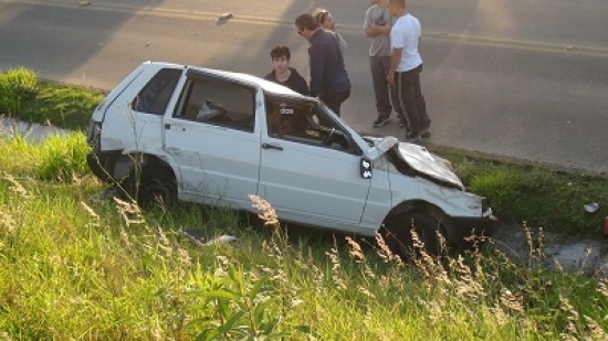 Maracajá - Um acidente grave no final da tarde na BR 101, deixou duas pessoas feridas. O veiculo Corola de Içara e um fiat uno de Caxias do Sul vinha na mesma direção sentido norte para o Sul. Segundo o motorista do Corola e a motorista de outro carro que vinha a traz o Fiat uno branco, foi ultrapassar e bateu na lateral do corola que rodopiou na pista. Já o fiat ultrapassou a mureta de concreto e caiu no barranco de uns 5 metros de altura. O motorista do Fiat e a esposa do motorista do corola se feriram e foram resgatados pelos bombeiros. O transito ficou lento e os populares tiveram que sinalizar até a chegada da policia.