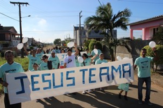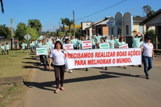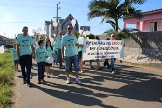 Aproximadamente 300 pessoas foram às ruas do Bairro Santa Cruz em Forquilhinha participar da 6ª Caminhada de Valorização a Vida, na manhã de hoje. Representantes de igrejas, grupos de jovens, associações, autoridades, moradores, ex-dependentes químicos, crianças e idosos andaram pelas ruas para conscientizar as pessoas sobre os perigos das drogas.