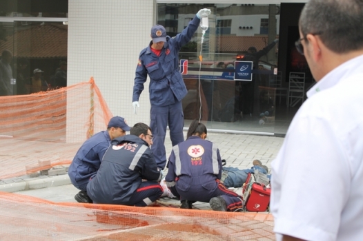 Na manhã de hoje um homem que fazia manutenção de uma placa em frente a uma obra na Rua Desembargador Pedro Silva sofreu uma descarga elétrica e caiu de uma altura de pelo menos cinco metros. Com a queda, o jovem, que é funcionário de empresa de Comunicação Visual, sofreu também lesões na cabeça. O Serviço de Atendimento Móvel de Urgência (SAMU) e o Corpo de Bombeiros foram acionados e estiveram no local prestando os primeiros socorros. O funcionário foi encaminhado ao Hospital São José em estado considerado grave. Conforme informações de colegas que acompanhavam o jovem na realização do serviço, ele segurava uma barra de ferro que seria fixada no topo da placa e esta provavelmente teria encostado em fios de alta tensão de um poste próximo, causando a descarga. A obra em que o jovem trabalhava era de responsabilidade de uma Construtora , porém ele estava prestando serviços pela empresa de sinalização. Responsáveis da empresa e da construtora estiveram no local e acompanharam o acidentado até o hospital.