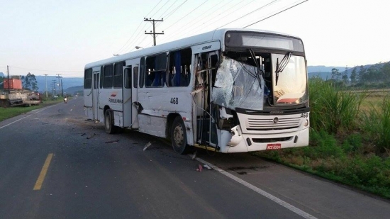 Acidente deixou 4 pessoas gravemente feridas na manhã de hoje por volta das 8h em Morro Grande. Segundo informações um ônibus que estaria levando trabalhadores colidiu contra um caminhão na SC 447 próximo a Madereira Zuchinalli em Morro Grande, com o forte impacto 7 pessoas ficaram feridas, sendo que 4 delas em estado grave. As mesmas foram encaminhadas para os hospitais de Turvo e Araranguá.