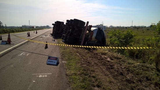 Um acidente, que ocorreu por volta das 7h20min desta quinta-feira, dia 10, está movimentando os órgãos de segurança da região. Uma carreta Volvo tombou no novo trecho da BR-101, próximo ao Ferro Velho Tá na Mão, localizado em Araranguá. Conforme a Polícia Rodoviária Federal - PRF, o acidente ocorreu quando o condutor do veículo de grande porte tentou desviar de outra carreta. Apesar da gravidade do acidente, o motorista não se feriu.Devido à carga ser de solvente-alifático, a PRF acionou a Defesa Civil Municipal, a Fundação Ambiental do Município de Araranguá – FAMA e os Bombeiros.Conforme a superintendente da FAMA, Karine Neves, a carga é altamente inflamável. “O ponto de fulgor é de 24º C, sendo muito inflamável. A carga tem um pequeno vazamento, e além do risco de explosão, também temos o temor que o solvente possa poluir o meio ambiente,” comentou Karine.A área do acidente foi isolada e a BR-101 está sendo fechada nesta manhã, para que o Corpo de Bombeiros possa resfriar a carreta e evitar assim, uma possível explosão. De acordo com o PRF Jair Gomes Pereira, os motoristas devem ter atenção quando trafegarem por Araranguá, pois o trajeto será feito somente pelo antigo trecho da Rodovia. “Os condutores devem ficar atentos aos desvios e ao trânsito, que vai ficar lento durante todo o dia no antigo traçado da BR-101,” alertou o PRF.