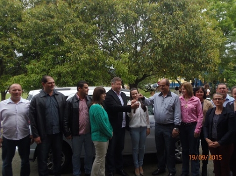 Prefeito Valdo e o Vice-prefeito Poca e Secretaria Aline, entregaram também, no mesmo ato, um veículo SPIN LTZ, 0KM, com capacidade para 16 passageiros para a Secretaria Municipal de Educação.