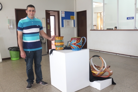 Ao entrar na Prefeitura de Araranguá, os munícipes irão de deparar com uma exposição inédita no local. Trata-se da mostra de objetos confeccionados pelo artista plástico Lucimar Correia Consoni de maneira bastante peculiar. Pneus que seriam descartados são transformados em vasos no formato de cisnes, canecos e decoração de mesa. Borracheiro, Consoni afirma que a ideia de confeccionar iniciou há pouco mais de um mês. “Fiz algumas pesquisas na internet e percebi que era possível reaproveitar os pneus que seriam descartados. Assim, comecei a criar as peças”, comenta o artista ao demonstrar preocupação em encontrar alternativas sustentáveis para evitar a proliferação da dengue. A iniciativa faz parte das ações do Programa Municipal de Combate da Dengue, da Secretaria de saúde, que promove campanha de conscientização até novembro, e realizado em parceria com a Subsecretaria de Cultura. “Como a gente faz um trabalho de conscientização nas borracharias do município, acabamos encontrando o Lucimar e propomos que ele pudesse expor os objetos durante a nossa campanha. Desta forma ajuda o programa nesta campanha e divulga o trabalho dele”, declara o coordenador municipal do Programa de Combate da Dengue, Joélcio Anastacio. O prefeito Sandro Maciel prestigiou a exposição e parabenizou o artista pela iniciativa. “É um trabalho muito bonito e o artista está de parabéns. Além de serem pneus transformados em objetos que poderiam causar problemas relacionados ao mosquito transmissor da dengue, estas peças proporcionam um visual surpreendente”, enaltece o prefeito. Denominada de "Arte & Sustentabilidade", a exposição ficará por 30 dias no hall de entrada da prefeitura.