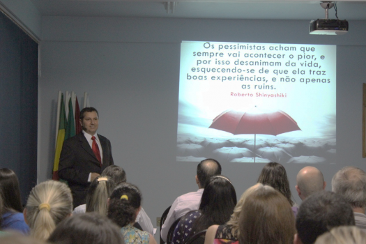 Presidente da Coopersulca, Arlindo Manenti que assistiu a palestra de José Mota pela primeira vez, desejou sucesso ao mesmo e que sua palestra é muito importante para motivar as pessoas.