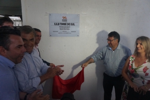 Foram inauguradas nesta terça-feira, 16, duas novas escolas na região Sul de Santa Catarina. A Escola João Colodel, em Turvo, e a Escola Timbé do Sul, no município de mesmo nome, vão atender, inicialmente, mais de mil alunos da região. O investimento do Governo do Estado soma quase R$ 14 milhões. As cerimônias de inauguração foram realizadas na tarde desta terça, em ato com a presença do governador Raimundo Colombo; do vice Eduardo Pinho Moreira; do secretário de Estado da Educação, Eduardo Deschamps; do secretário executivo da Agência de Desenvolvimento Regional de Araranguá, Ademir da Silva; e da secretária de Estado da Justiça e Cidadania, Ada Faraco De Luca, entre outras autoridades.