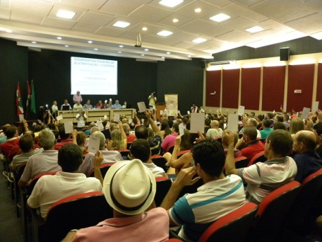 Na noite de hoje (19) com auditório lotado, centena de associados e amigos participaram da Assembleia ordinária da Coopera, e após a prestação de contas do ano de 2015, e aprovações, Walmir Rampinelli foi aclamado como Presidente da cooperativa, tendo Carlos Alberto Arns (Cali) como vice. Em seu discurso descontraído Cali não conseguiu segurar a emoção em sua despedida como Presidente. “Quando entrei na Coopera estava passando por um momento difícil na minha vida, mas consegui, e por isso nesses 35 anos de cooperativa, 26 deles como Presidente gostaria de agradecer a todos que confiaram no meu trabalho” Conta