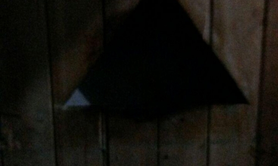 Segundo informações, o homem de 30 anos ficava trancado no quarto, pois era agressivo e esse buraco em forma de triangulo foi feito para além de entrega de alimentação, para conversação.