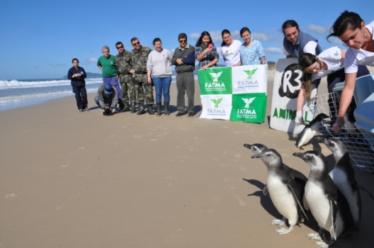 Fortes, bem alimentados e prontos para voltar ao mar. Assim estavam os 11 pinguins devolvidos à natureza nesta quarta-feira, 24, na Praia do Moçambique, em Florianópolis. Os animais estavam no Centro de Triagem de Animais Silvestres (Cetas), no Parque do Rio Vermelho, há cerca de 45 dias. O trabalho de reabilitação é feito pela Fundação do Meio Ambiente (Fatma), ONG R3 Animal e Polícia Militar Ambiental.