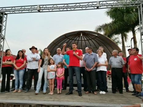 De bandeiras e roupas vermelhas a praça central do município ficou tomada por populares e adeptos da candidatura do 15 quem tem uma coligação formada pelos partidos do PMDB,PSD,PPS,PTB,DEM e PV que tem a frente o candidato Gaiola e o vice Aldo Brognoli. O evento aconteceu na tarde do ultimo domingo, quando foi dada a arrancada, mostrando os candidatos a prefeito, vice e os Vereadores. Com a presença dos Deputados Ronaldo Benedet, Manoel Mota e Ricardo Guidi, contou com a presença dos ex-prefeitos, Mário Recco, Aldoir Bristot e José Mota Alexandre.