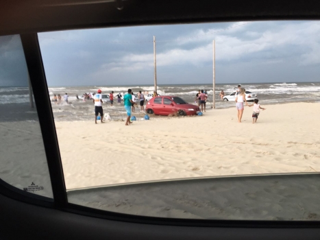 A mesma onda também atingiu a praia e quem estava no local correu em desespero. No torneiro, no Balneário Rincão, relatos apontavam que uma criança de 5 anos foi resgatada, mas seus pais acabaram levados pela água. No entanto, minutos depois essa informação foi descartada e há confirmação apenas de danos materiais