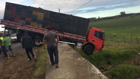 Um grave acidente de trânsito bloqueou por mais de uma hora a ponte entre Sombrio e Balneário Gaivota no fim da tarde do último sábado (22). Um caminhão colidiu contra um veículo, que foi arremessado no rio. Apesar do grande susto todos foram encaminhados ao hospital sem lesões graves e passam bem.
