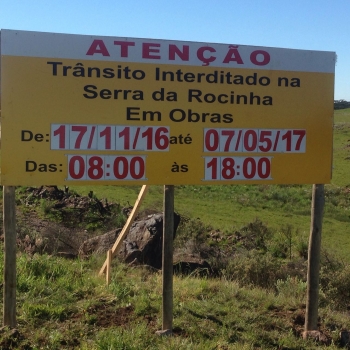 Depois de tanto tempo de espera, empresários e moradores da Serra da Rocinha e região estão otimistas, isso porque as obras estão a todo vapor na Serra. Por conta disso o trânsito estará interrompido do dia 17/11 a 07/05 das 8h ás 18h todos os dias. Isso porque seão detonadas rochas e para segurança dos motoristas é preciso evitar o trânsito nesse período. Mas todo esse transtorno causa é felicidade para eles tendo em vista a importância dessa obra que já foi tão aguardada por todos e que trará um benefício enorme para a região.