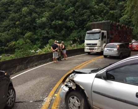 Caminhão e automóvel colidem em curva na Serra do Rio do Rastro