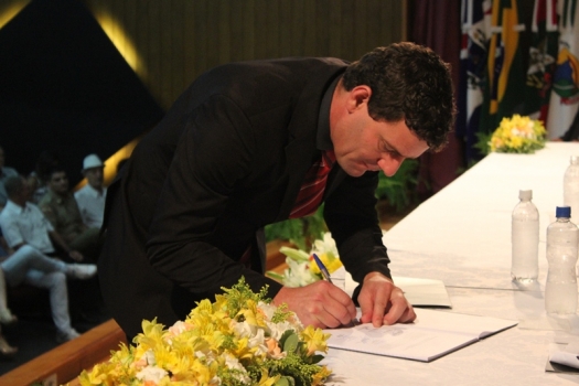 Com muitas palmas o Prefeito empossado Rogério Frigo fez seu discurso falando que vai trabalhar pelo povo. “Quando você entra na vida pública você não se governa mais, passa a ser governado. E é isso que nós estamos fazendo, contribuindo para o melhor para o nosso município. Sei que não fui o candidato de todos, mas serei sem dúvida nenhuma o prefeito de todos. E vamos com certeza trabalhar para o nosso povo. Agradeço a população e prometo honrar cada voto recebido. Vou trabalhar muito mais do que já trabalhei nos outros dois mandatos. Parabenizo o Evandro e o Zé Spillere por todas as conquistas que realizaram. Enfim dizer com orgulho da honra e responsabilidade de comandar o destino do nosso município nos próximos 4 anos e não tenho duvida de que não vamos envergonhar nenhum neoveneziano e vamos lutar pelo melhor para nossa cidade” Concluiu Rogério Frigo.