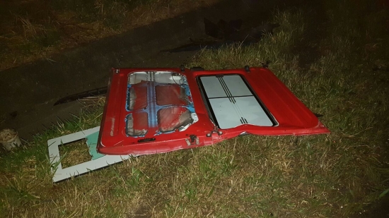 A viatura da Policia Rodoviária ficou destruída. Já a viatura dos bombeiros com o impacto foi arrancada as portas.
