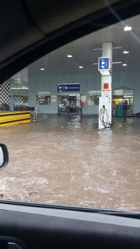 A obra de construção de uma galeria pluvial na esquina das avenidas Coronel João Fernandes e Capitão Pedro Fernandes que custou aos cofres públicos mais de R$ 1 milhão de reais volta a causar polêmica em Araranguá. Com a forte chuva que caiu na tarde desta quinta-feira, dia 23, o local voltou a alagar e prejudicou a mobilidade de quem passava no Centro.