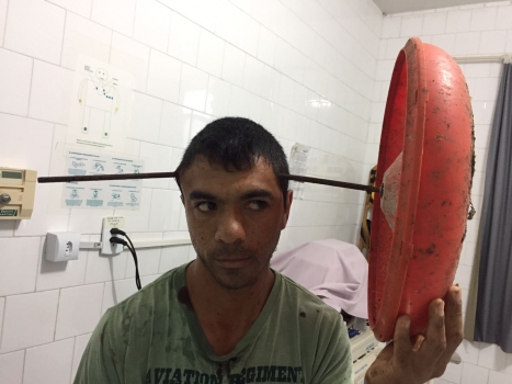 Homem sobrevive após ter cabeça atravessada por peça metálica