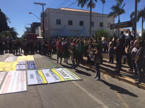O ato que iniciou em frente ao IFSC, percorreu as principais ruas da cidade e agora segue em direção à BR-101.
